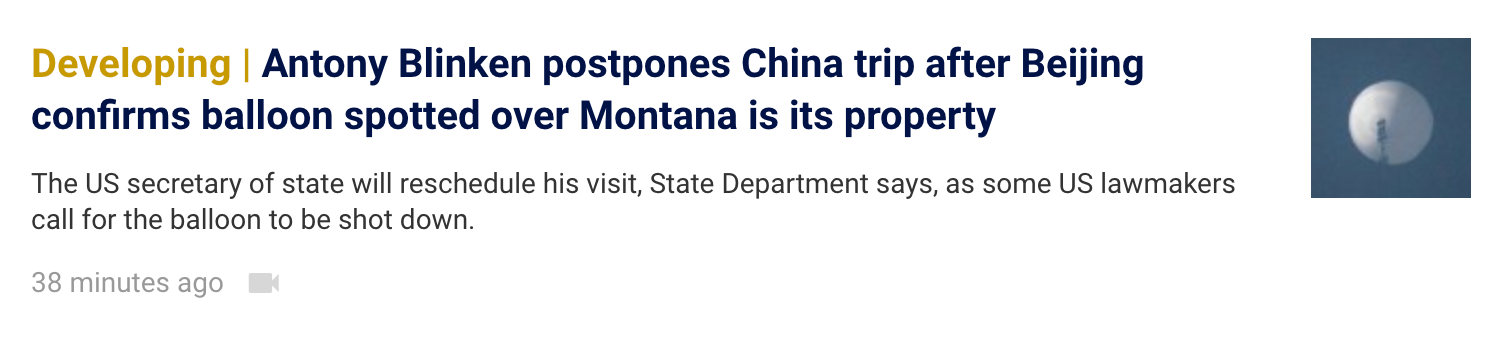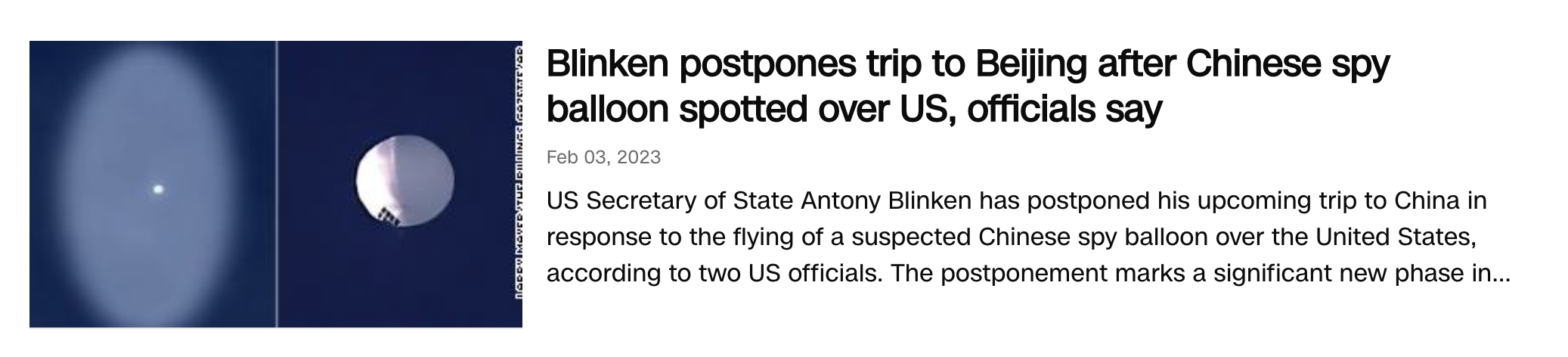 Here’s a currently developing story headline in the CNN related to a Chinese balloon: